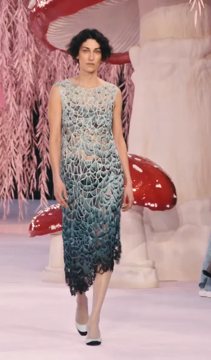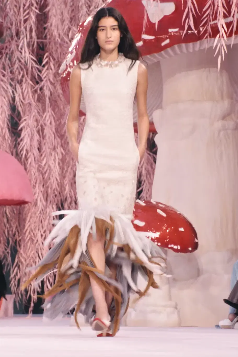 Na Chanel, a temporada marcou a estreia de Matthieu Blazy como diretor criativo. Sua leitura construiu um universo de fantasia delicada, quase suspensa no tempo. A narrativa remete a jardins imaginários e a um cenário onde a leveza e o sonho conduzem a coleção.