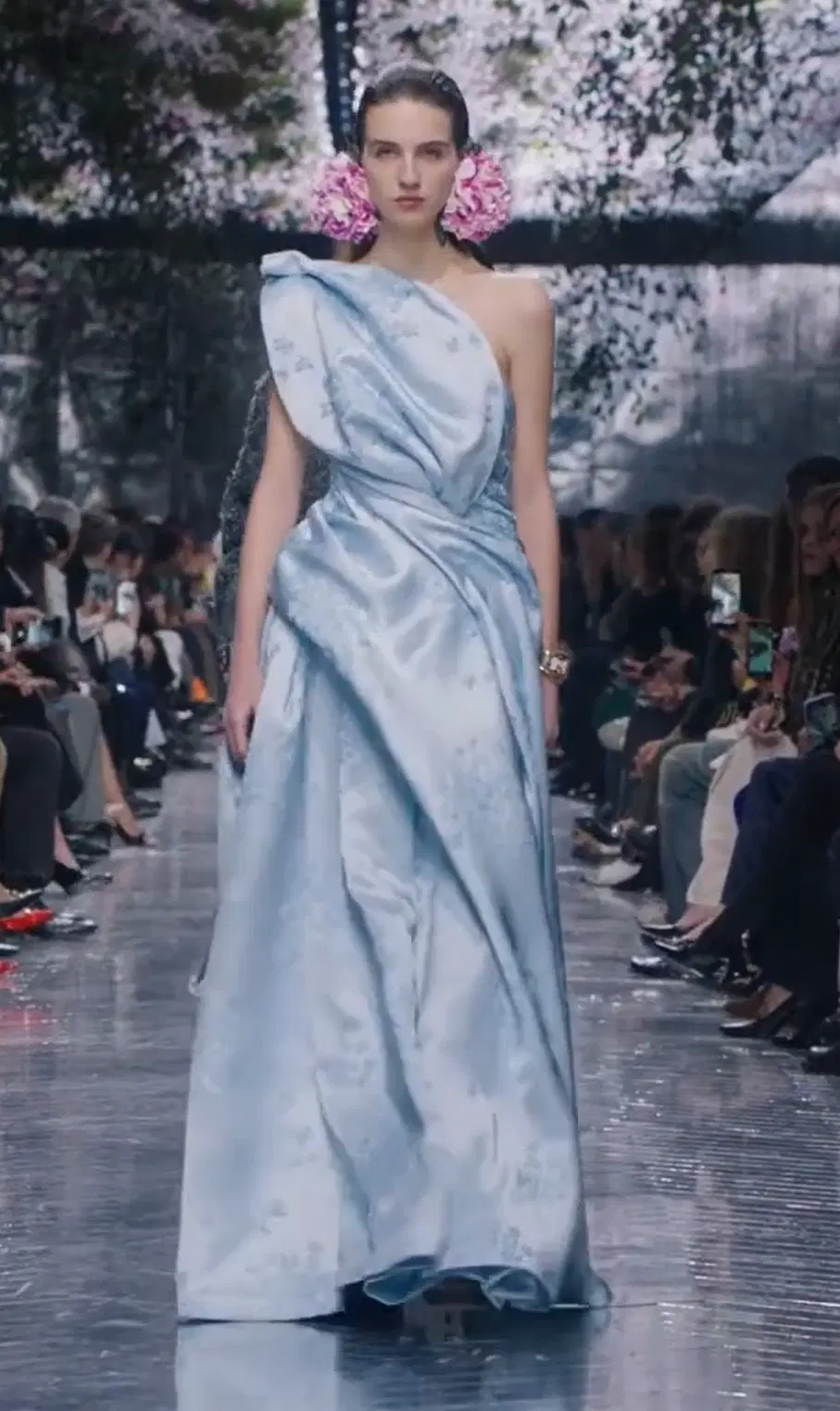 De maneira geral, a coleção apresentou forte presença de elementos florais nos tecidos, acessórios e aplicações. Essa utilização ganhou destaque como jacquard floral drapeado e plumagens. Essa leitura ultrapassa a passarela e dialoga diretamente com a moda festa contemporânea ao propor vestidos de estrutura clara, cinturas marcadas e volumes pensados, onde o encantamento nasce da construção.