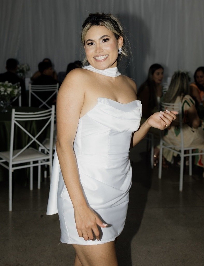 Partimos de uma referência escolhida por ela e, a partir dali, adaptamos cada detalhe para o seu corpo, seu estilo e o momento que ela queria viver.