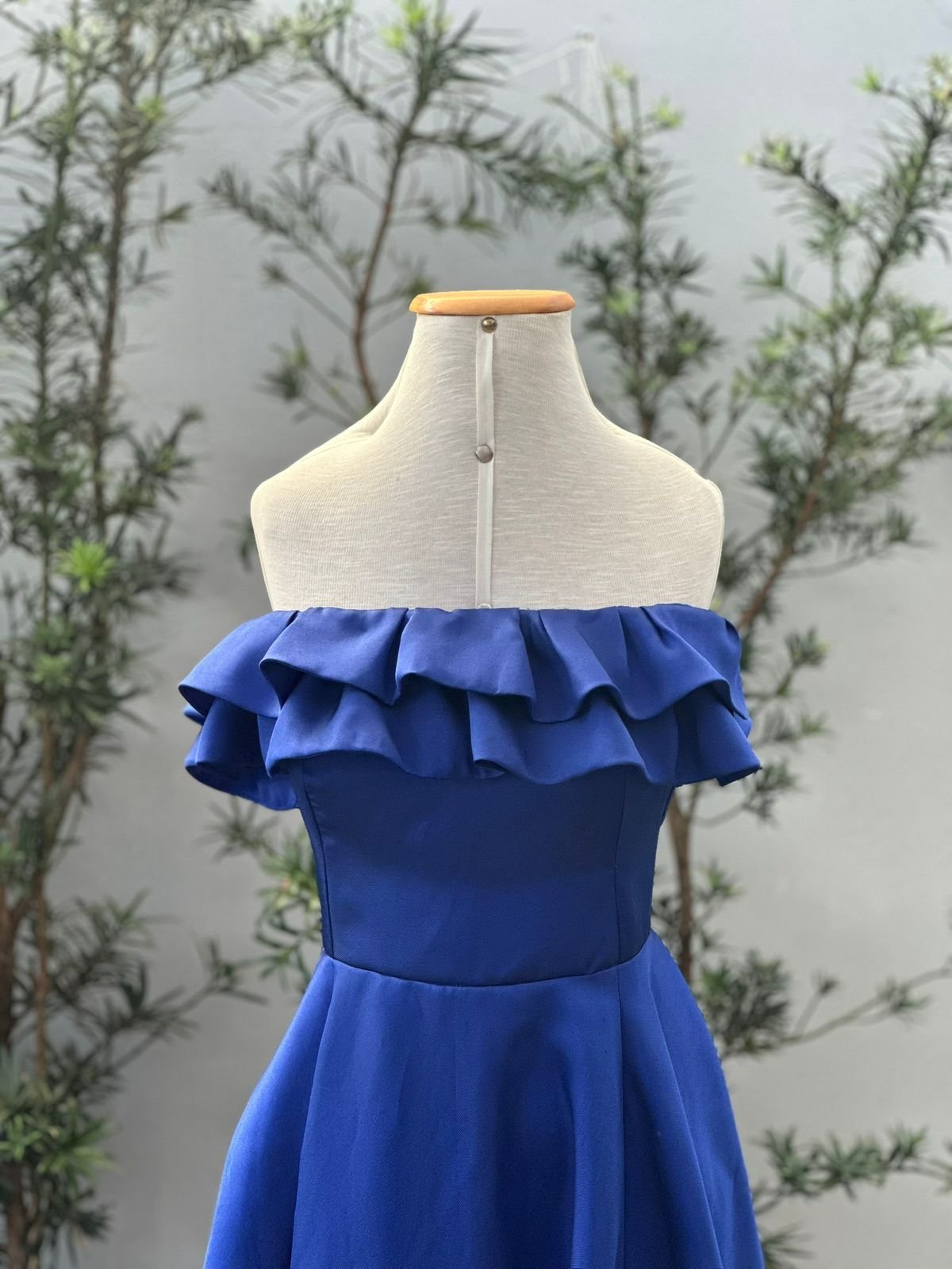 O decote ombro a ombro com babados cria um desenho suave e feminino, trazendo equilíbrio visual e destacando o colo de forma elegante. Já o corpo estruturado garante sustentação e conforto, permitindo que a peça se molde ao corpo com segurança e presença. Essa funcionalidade é gerada pela amarração ajustável .