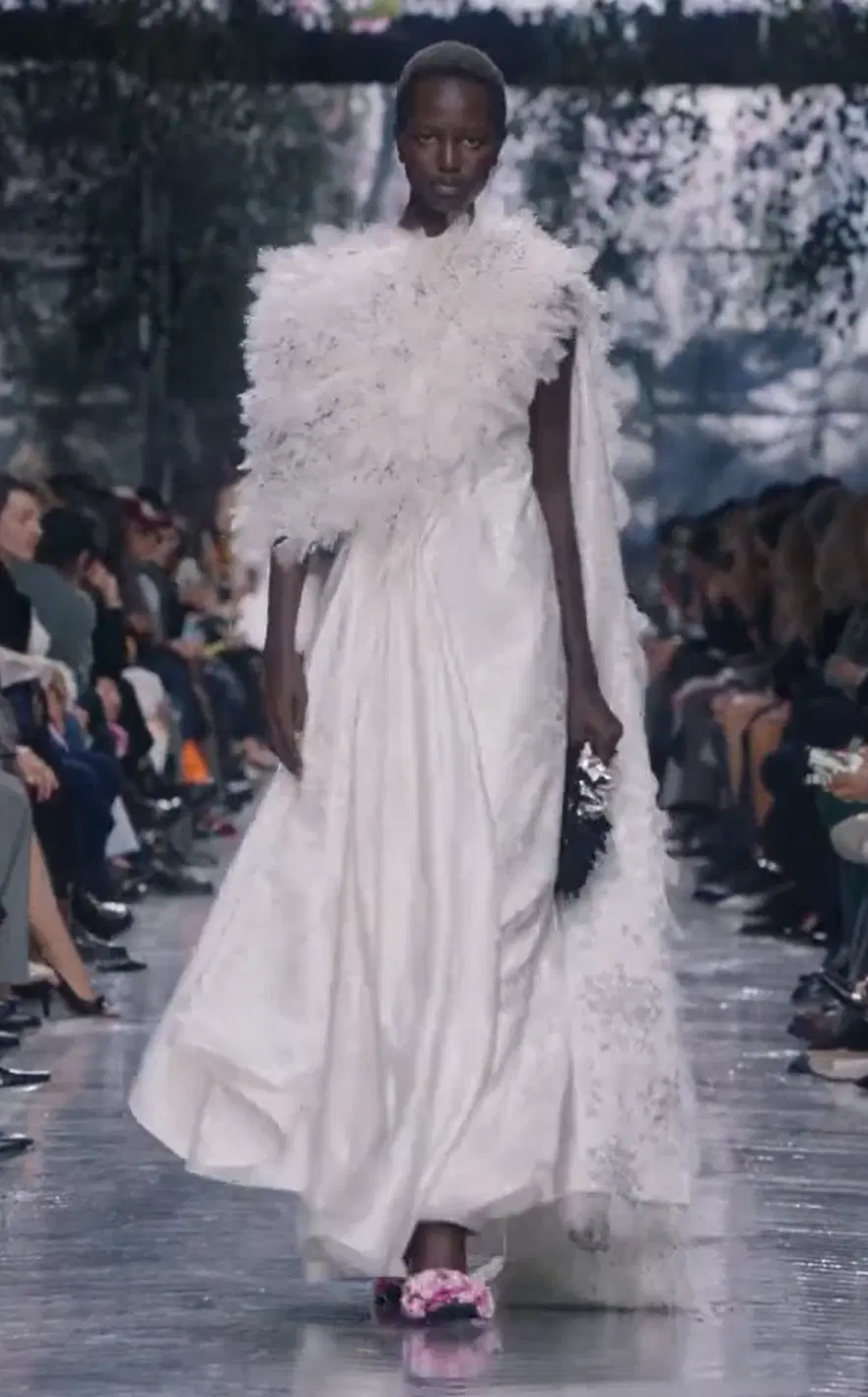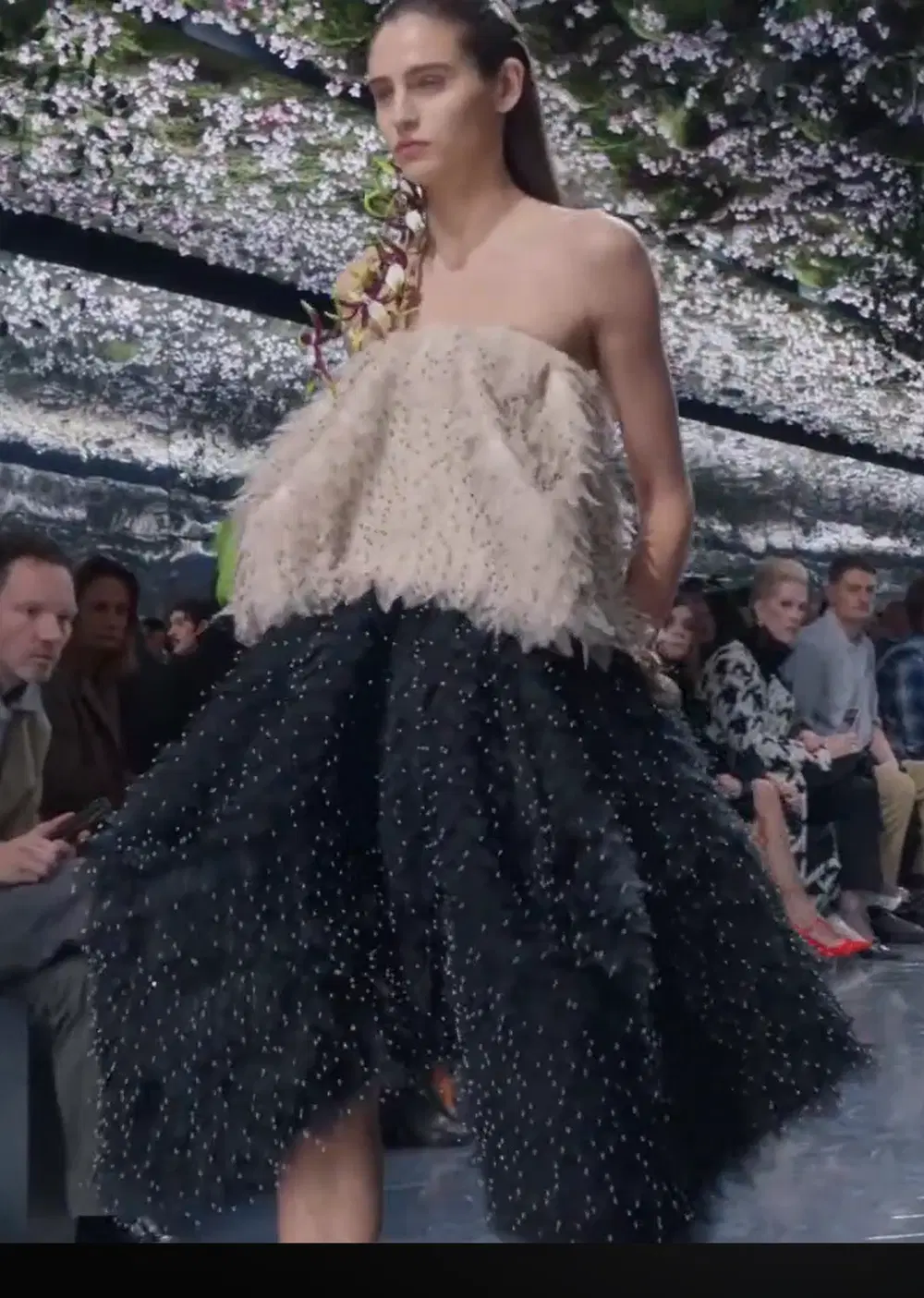 Na Chanel, a temporada marcou a estreia de Matthieu Blazy como diretor criativo. Sua leitura construiu um universo de fantasia delicada, quase suspensa no tempo. A narrativa remete a jardins imaginários e a um cenário onde a leveza e o sonho conduzem a coleção.
