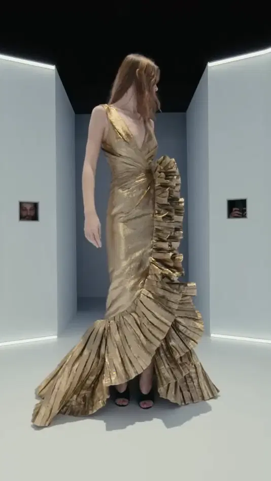 Essa evolução se torna clara quando comparada a coleções anteriores. A proposta aposta em brilho, transparências, tecidos acetinados e silhuetas bem definidas, compondo uma coleção que transita entre ternos femininos, vestidos de festa e combinações de corset com calça.